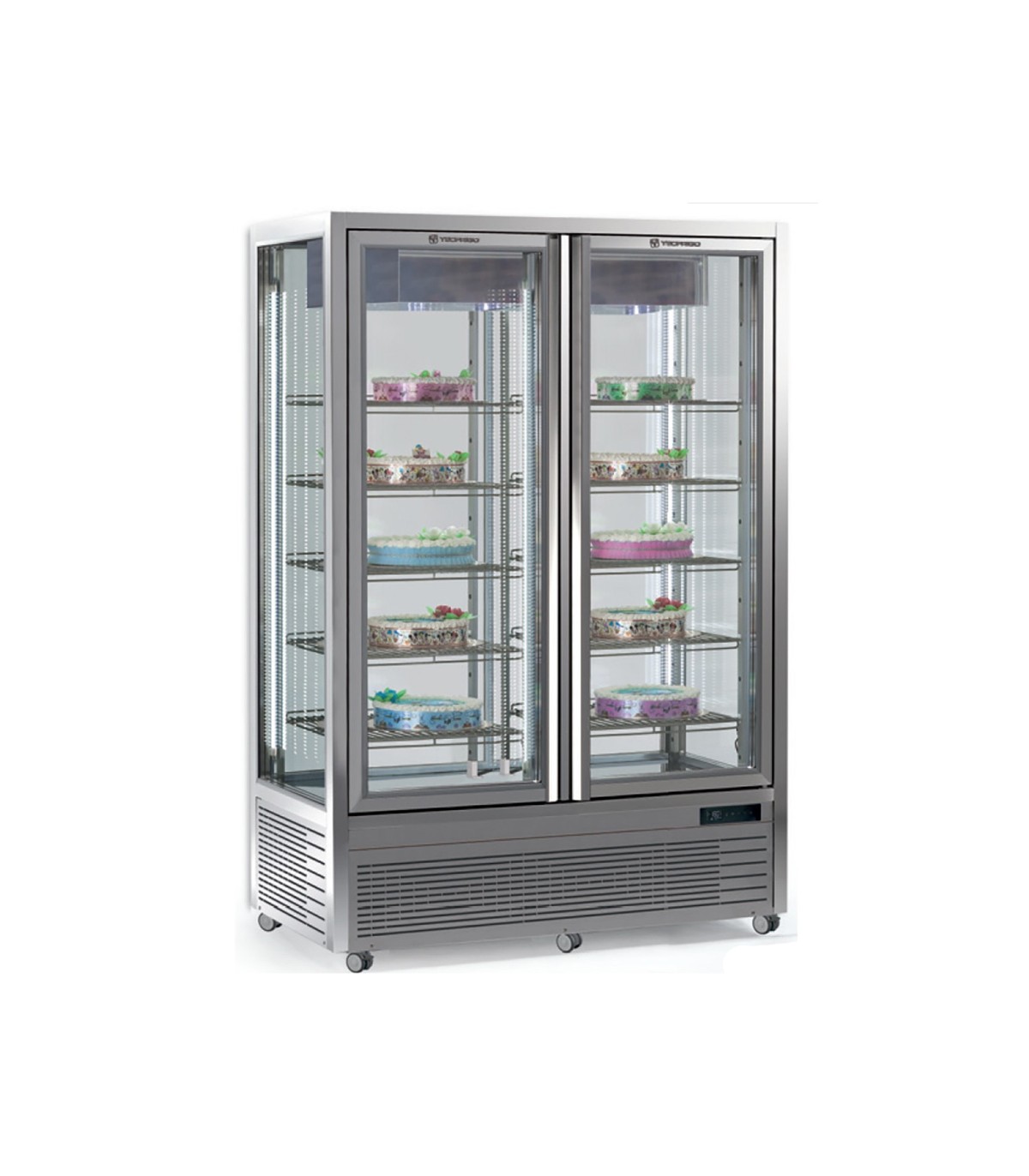 Intervalul de temperatură unic de +4 până la +10 grade Celsius în ambele zone face ca acest echipament să fie ideal pentru depozitarea prăjiturilor și a altor produse similare.