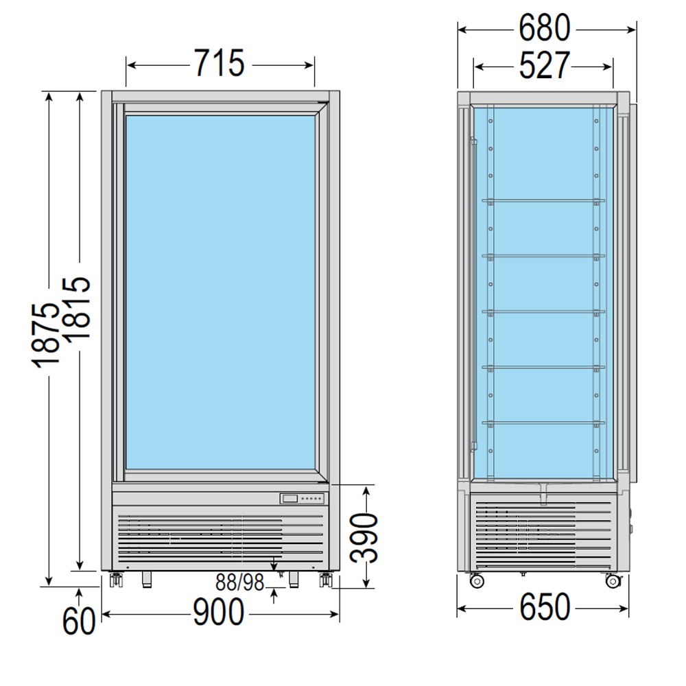 Cu o lățime de 600 mm, adâncime de 600 mm și înălțime de 1730 mm, această vitrină oferă o capacitate generoasă de depozitare a alimentelor.